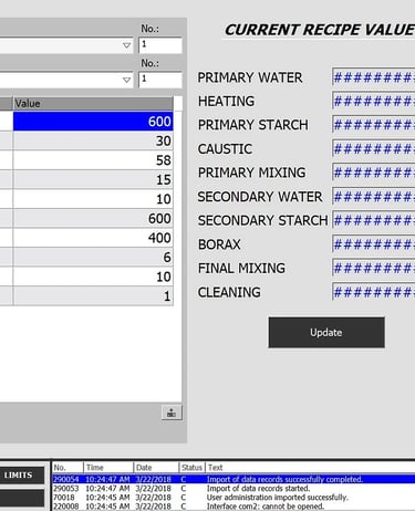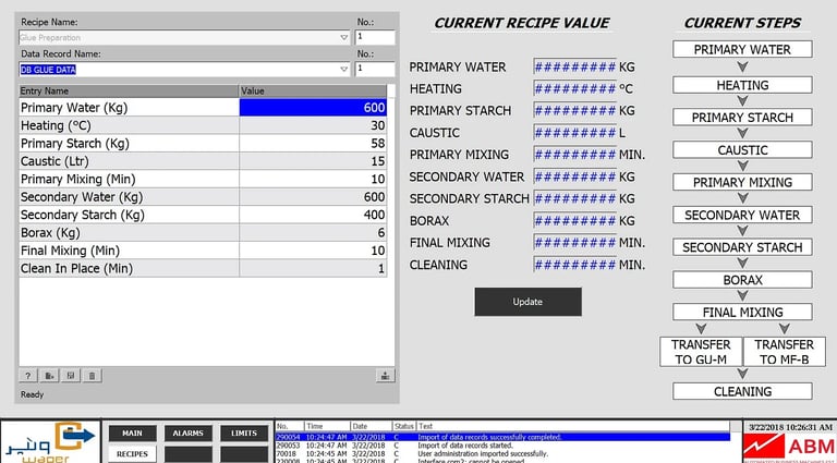 the process design and operational procedures of the customer. Main objective is to control manual and automatic batch production via SCADA/HMI interface with the use of Recipes for different types of product to be produce.
